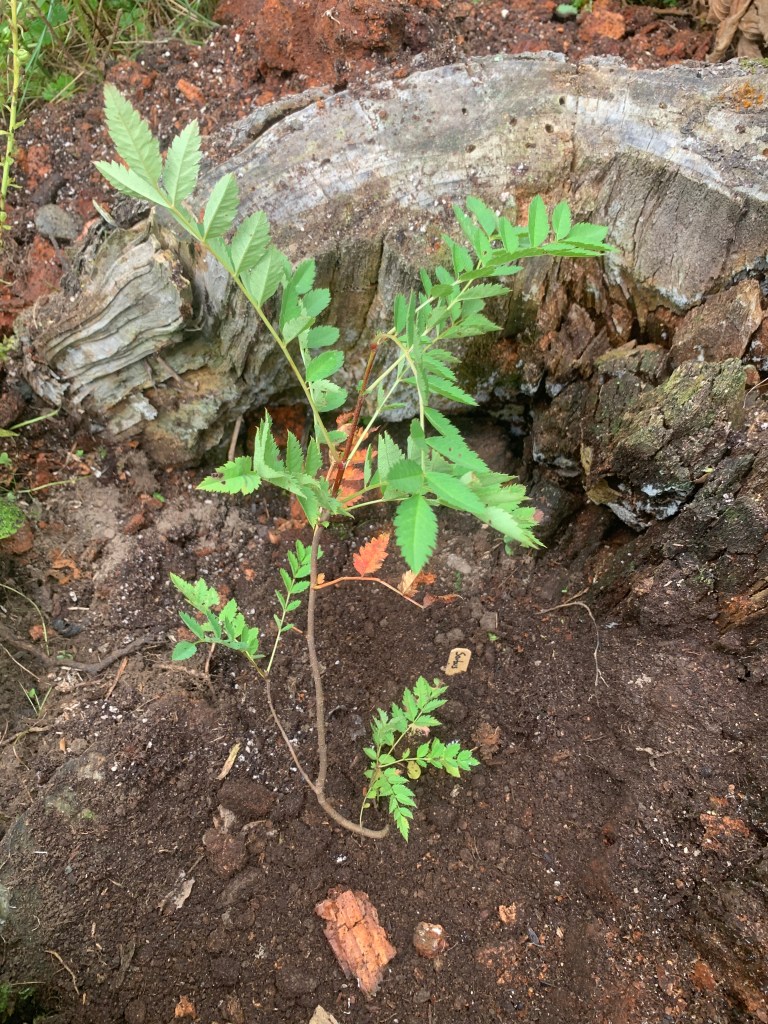 i sat that day in the warm soil, sadly remembering my stunning tree, covered with red rose buds in spring, compact brown cones in summer, and bright gold needles in the autumn. suddenly, i thought how fitting it would be to fill the hollow rotting base of the tamarack with good soil and put the little rowan there, to honor my old friend and nourish my new one. to make the best of the ruin of love. to start a hopeful story that would write itself out on the long pages of this garden.