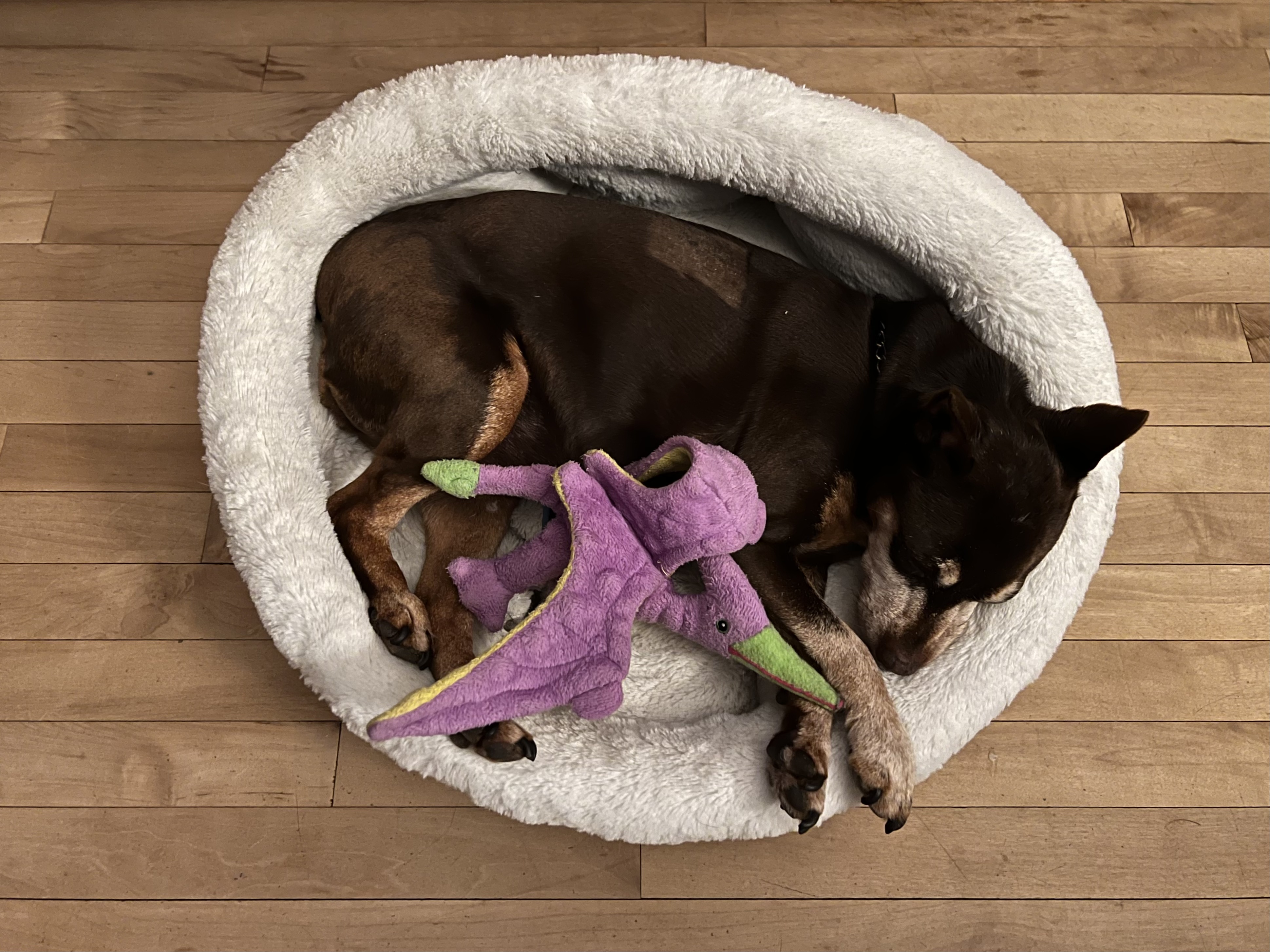 i had never had (or even wanted) a toy breed. i like big, boisterous dogs who can lope for miles. but a little voice told me that i should inquire about this small pointy dog. the foster family brought her to a hobby farm to see how she behaved around chickens and livestock. she was a natural. they sent me videos of her looking askance at chickens. and so i pulled the trigger. filled out the paperwork. brought her home.