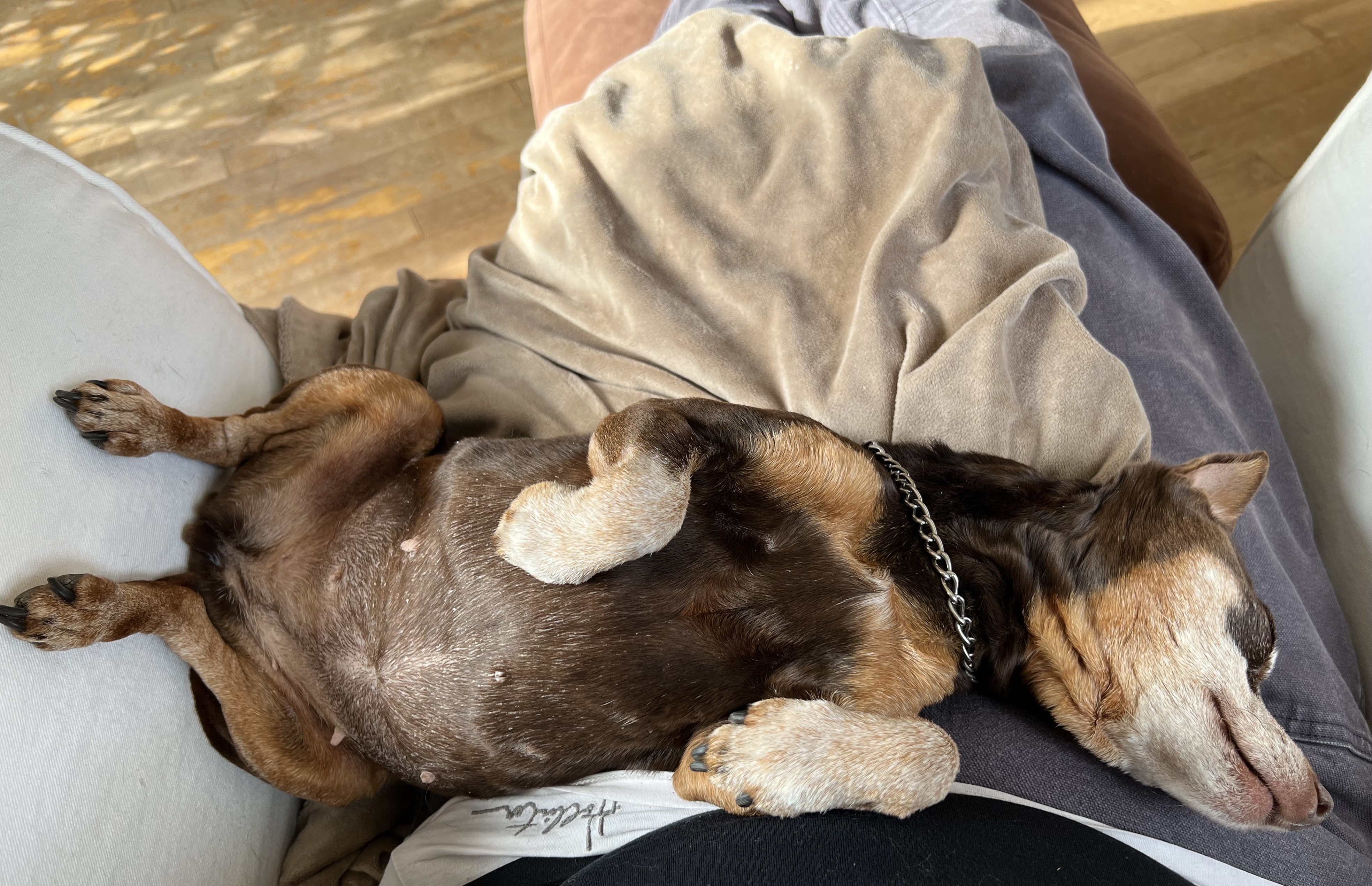 she was depressed, disoriented. i was, too. and i made the decision that we have to make when we love dogs: it was time for bella to sleep. her vet agreed and i arranged to have a last week with my best friend. she was going to eat all the things she wasn’t allowed to eat: cheese. bacon. ham. peanut butter. full-fat yogurt. i was going to slow down, sit still, and absorb the last days of her life.
