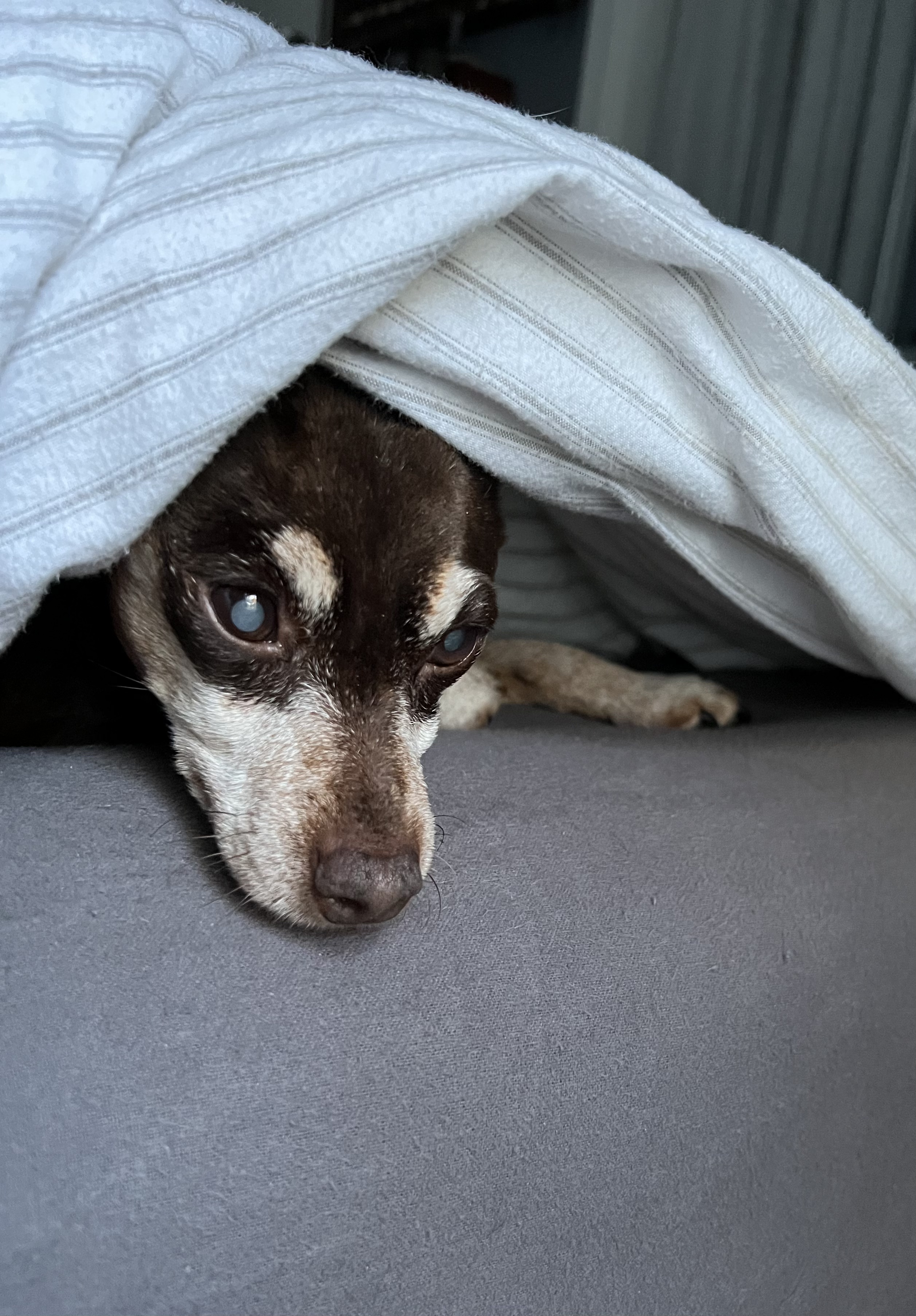 a few months ago, her vet diagnosed diabetes and had concerns about cushing’s disease. we began insulin injections and monitoring. 2 units became 5 units became 7 units. we never stabilized her blood glucose. and then, in a matter of days, she lost her sight entirely. on wednesday, she could see. by friday, she was blind. on wednesday, she was bella. by friday, she was some other dog entirely.